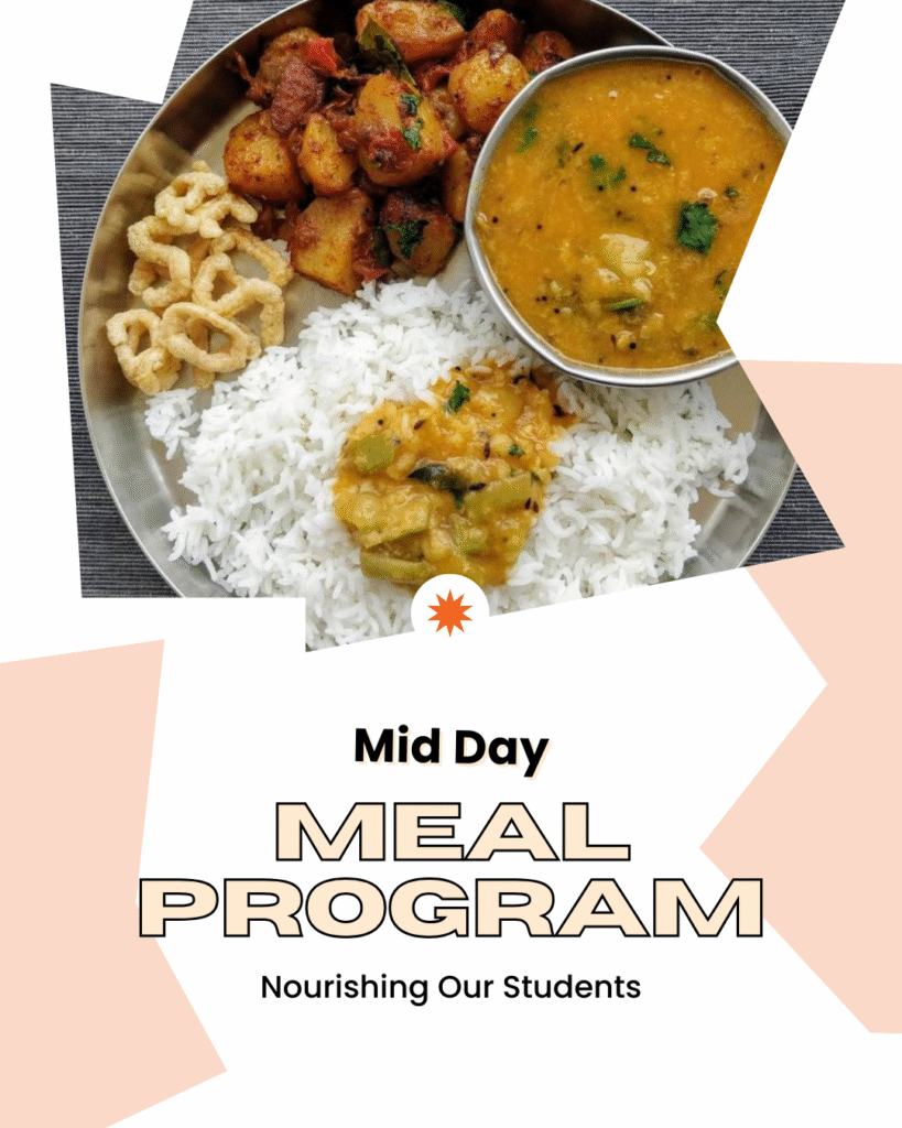At Sri Yogeshwarananda English Primary, Middle and High School, we believe that a healthy and nutritious meal is essential for a child’s overall well-being and academic success. Many of our students come from underprivileged backgrounds and may not have access to regular meals at home. That’s why we are proud to offer the Mid-Day Meal Scheme, a vital program that ensures our students receive a nourishing lunch every school day.